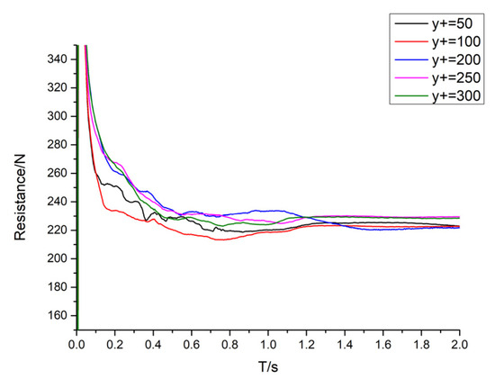The numerical results and the resistance curves of different y+ are presented in Table 6 and Figure 11, respectively.