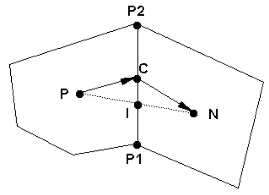 In the above, is the distance vector from P to C and is from C to N. The normal and cross diffusion coefficients, and , at each polygon side involve only geometric variables; they are calculated only once in the beginning of the computation.