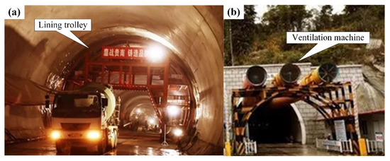 Construction situation (a) inside and (b) outside the tunnel before the incident.