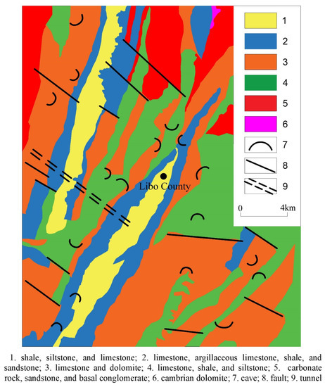 Geological map of Libo County (recreated based on [39]).