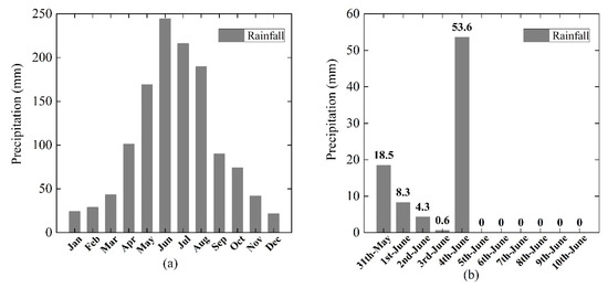(a) Average monthly rainfall in Libo County. (b) Rainfall in Libo prior to the incident.