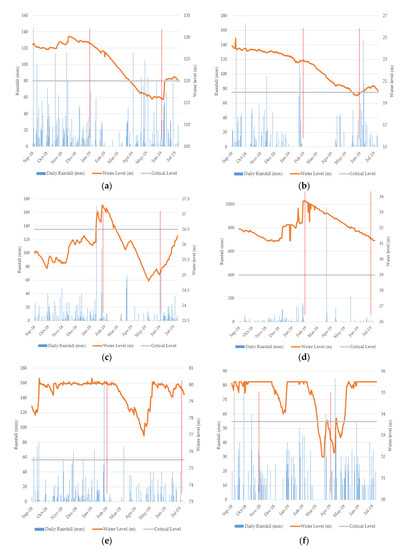 For this reason, a regional approach is taken to determine drought periods for the area surrounding each dam. With the determination of relative drought deviations based on the percentage of the average rainfall in an area, we can more clearly define the period of drought that has occurred by studying rainfall patterns and identifying periods of abnormally low rainfall. Due to the lack of a baseline because of the limited data, drought determination can also be conducted through this approach by determining unusually low rainfall for the available time period. At the same time, there are various climatic condition variables. Dracup et al. [92] stated that of the factors affecting water resources, generally rainfall is the major factor, along with temperature, soil moisture, and vegetation cover in the area [93,94]. Rainfall directly causes drought and affects water resources through affecting the soil moisture, streamflow, runoff water, dam storage, and water levels [95]. Studying the changes in quantities of precipitation over a specific time and area is an important approach for evaluating the climatic change, which has a direct impact on the water level, specifically through the intake and recharge of the water balance equation [96].