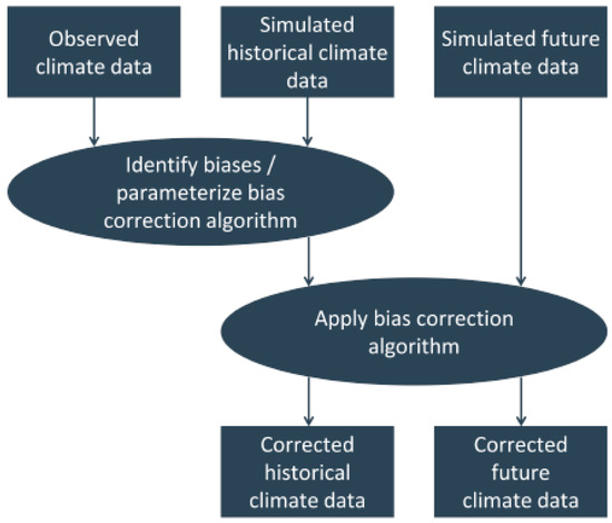 Figure 2. The detailed bias correction procedure using the Climate Model data for hydrologic modeling (CMhyd) tool [32].