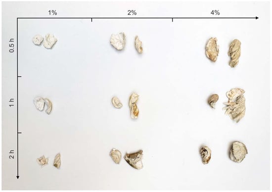 | Biomass to Solvent Ratio (%) | 0.25 h | 0.5 h | 1 h | 1.5 h | 2 h |