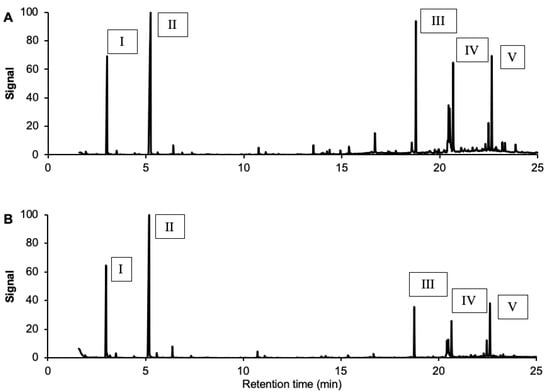 3.4. Analysis by Gas Chromatography-Mass Spectrometry (GC-MS)
