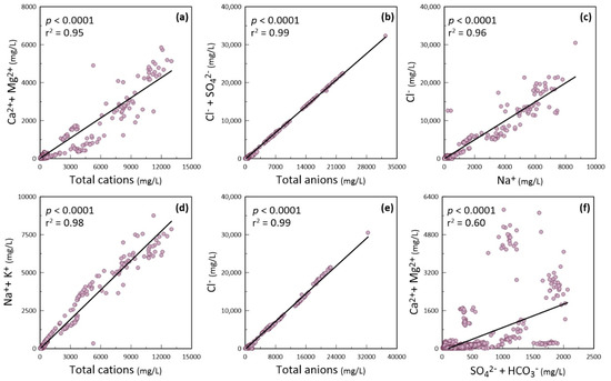 Bivariate plots plotted between average values (2008–2017) of main ions in groundwater of Korea. P-values were significant (< 0.0001) in all bivariate plots.