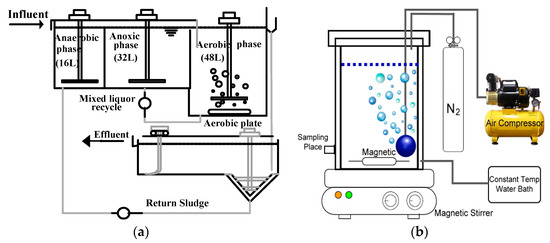 (a) A2O mold schematic and (b) batch experiment reaction tank.