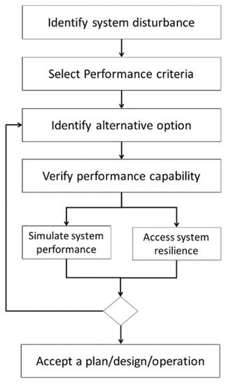 The performance-based water resources engineering process in Figure 2 can be implemented (i) in an iterative way by examining alternative options (plans/designs/operational strategies) ahead of system disturbance or (ii) in a real-time by responding to system disturbance and managing recovery from it. Verification of system performance capability is done by combined use of simulation and quantitative resilience assessment (see Figure 2). More details on the tools for supporting the performance-based water resources engineering follow.