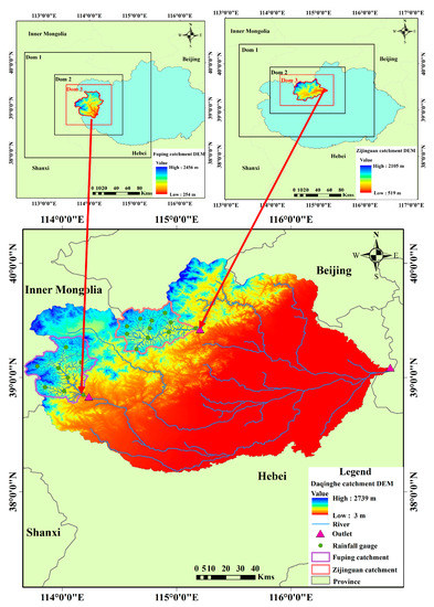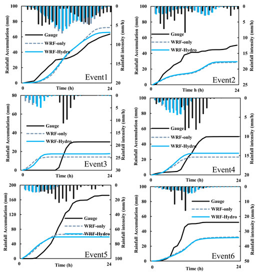 - Liu, J.; Bray, M.; Han, D. Sensitivity of the Weather Research and Forecasting (WRF) model to downscaling ratios and storm types in rainfall simulation. Hydrol. Process. 2012, 26, 3012–3031. [Google Scholar] [CrossRef]