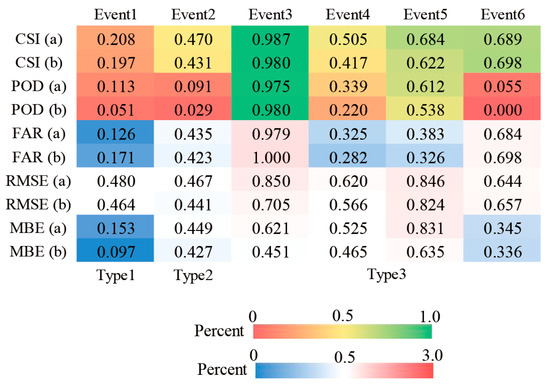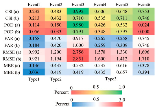 | FAR | 0–1 | 0 | Proportion of false positives in simulated rainfall events. |
