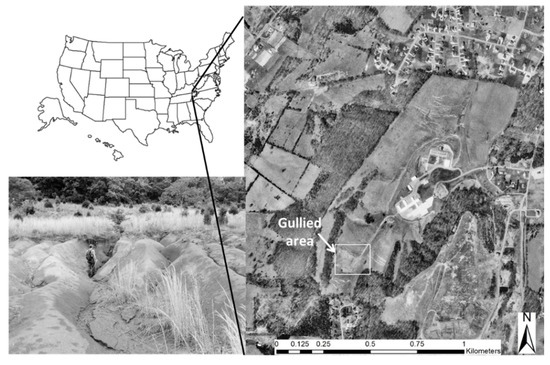 Gully erosion is a global problem, particularly in the southeastern United States, where erodible soils, high relief, and climatic and meteorological factors encourage soil erosion. Gully erosion is one of the most dangerous forms of soil degradation, which is caused by natural and anthropogenic activities. Gullies are composed of several continuous or discontinuous channels and rills with varying slopes, which may later develop into deep trenches, inhibiting effective remediation by tillage. Gully erosion can initiate from anthropogenic factors like farming or grazing on susceptible soils, increased runoff from land-use changes due to logging or construction, and poor vegetative cover from wildfire or high soil salinity. Additionally, natural drivers for soil erosion are meteorological variables, topography, and soil type and texture [1,2].