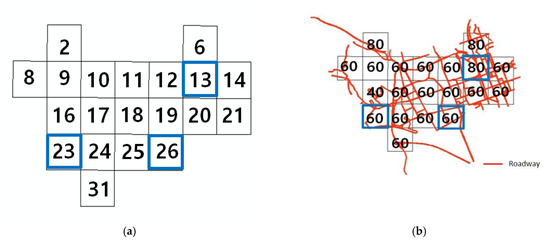 Sadang-dong (a) cell number and (b) speed limit for each cell.