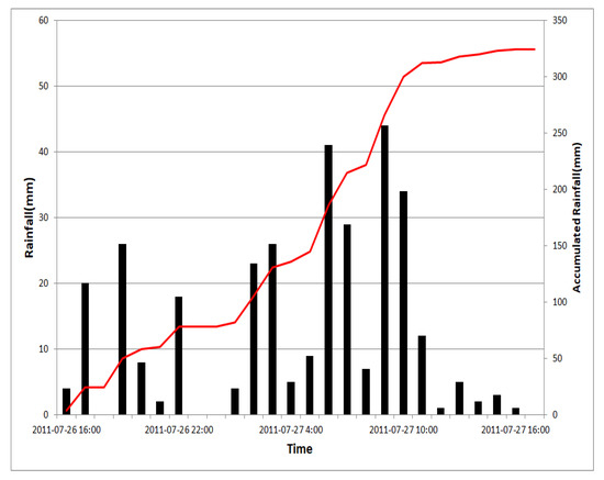 Hyetograph for Sadang-dong (26 July 2011, 16:00–27 July 2011, 16:00).