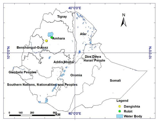 Dangishta and Robit experimental sites in Ethiopia; adopted from Assefa et al. [].