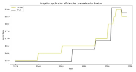 Irrigation efficiency factor used in the TF-A/B and TF-C models.