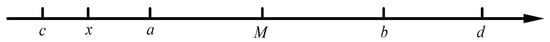 The interval is defined as the attracting set of on the real axis, and is an extended interval with two endpoint extensions. The interval included the , that is, . The relationship between these intervals is illustrated in Figure 3.