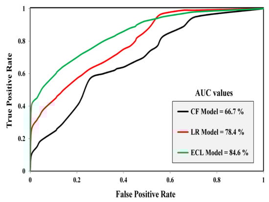 In Section 4.4, models’ results were analyzed and validated using the validation dataset and the ROC curve method. The results of validation revealed differences between all three approaches, namely including CF (i.e., bivariate statistical model), LR (i.e., multivariate statistical model) and their ensemble.