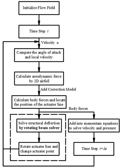The computational flow chart of new elastic actuator line model.