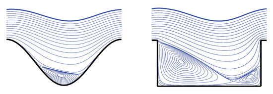 - Scholle, M. Creeping Couette flow over an undulated plate. Arch. Appl. Mech. 2004, 73, 823–840. [Google Scholar] [CrossRef]