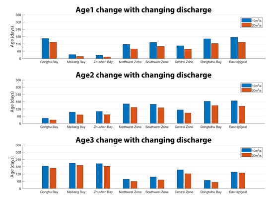 Secondly, water age analysis would provide information on the tributary discharge influence of critical spots, assisting the governance of water quality in a complicated management condition. In this study, three water age groups have been chosen corresponding to inflow tributary discharge from three municipalities. Situations become complicated when nutrient control and wastewater treatment involves more stakeholders. Water age analysis could also provide essential information to divide the responsibility and help improve the master plan of Taihu Basin’s water quality management.