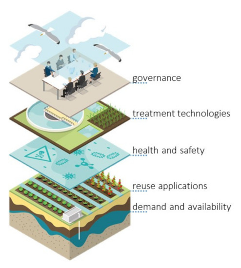 Earlier evaluations by independent experts [22] concluded that although many important elements are included in the proposed water quality requirements, several key aspects were inadequately addressed—in particular contaminants of emerging concern, spread of antibiotic resistance, disinfection by-products, and the potential of effect-based bioanalytical tools—and that the selection of minimum quality requirements is unclear. In this paper, the different aspects that should be considered in every water reuse case are addressed, i.e., water demand and availability, water quality (health and safety), treatment technology and governance (policy and regulations, economics, stakeholder participation and public acceptance) (Figure 1). The proposed EU guidelines for the reuse of domestic wastewater for irrigation and the WRRMP were critically reviewed with respect to practical feasibility for a specific water reuse case in the Netherlands [23]. This led to the identification of knowledge requirements for responsible water reuse. This paper provides an outlook on how the proposed regulations could be improved to encourage innovation in technically achieving, managing, monitoring, and regulating responsible water reuse.