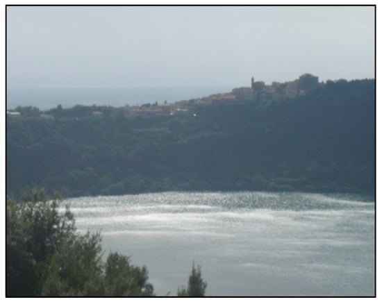 In the Italian peninsula, there was a widespread use of drains for irrigation, especially in orchards and pasture crops, more rarely for vineyards and olive orchards. In Central and Northern Italy drains were used for irrigation of crops and they often marked the limits of centuriation; i.e., the process or act of dividing land into centuries or equal areas undertaken by the Romans and known as Roman grid [88]. Emissaries of lakes, such as Lake Albano (Figure 9), were also used for irrigation and this and other water infrastructures were built by the legions (Figure 10). Among the eleven aqueducts, the Old Aqua Anio and the Aqua Alsietina were used only for irrigation and for feeding the Nymphaea because of their low water quality.