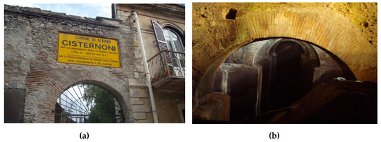 Cistern built by the II Legio Partica”: (a) access, in the Albano municipality, Italy and (b) view of the interior (Photo by M. Salgot).