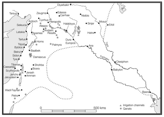 - Kamash, Z. Irrigation technology, society and environment in the Roman Near East. J. Arid Environ. 2012, 86, 65–74. [Google Scholar] [CrossRef]
