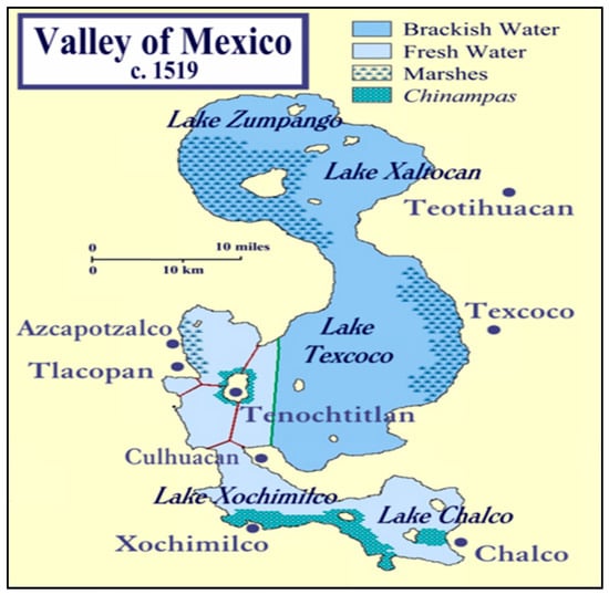 - Coe, M.D. The chinampas of Mexico. Sci. Am. 1964, 211, 90–98. [Google Scholar] [CrossRef]