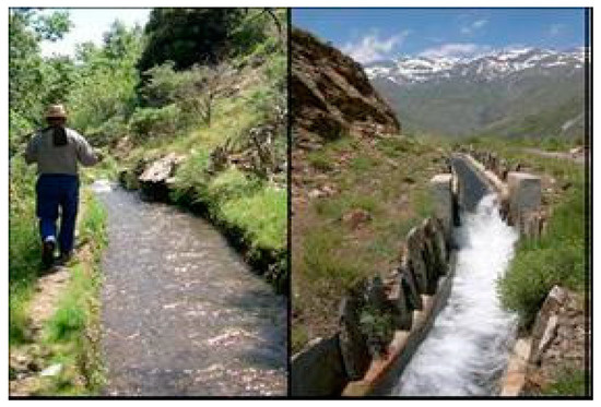 - Mateos, L.; Vivas, G.; Giráldez, J.V.; González-dugo, M.P. Origin, tradition and decline of the ancestral irrigation systems in the high Alpujarra, Spain. In Proceedings of the Workshop History of Irrigation, Drainage and Flood Control, ICID 22nd European Regional Conference, Pavia, Italy, 2 September 2007. [Google Scholar]