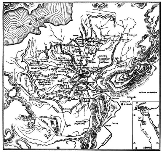 - Keenan, G. Fayyum Agriculture at the End of the Ayyubid Era: Nabulsi’s Survey. In Agriculture in Egypt: From Pharaonic to Modern Times; Bowman, A.K., Rogan, E., Eds.; Oxford University Press for the British Academy: Oxford, UK, 1999; pp. 287–299. [Google Scholar]