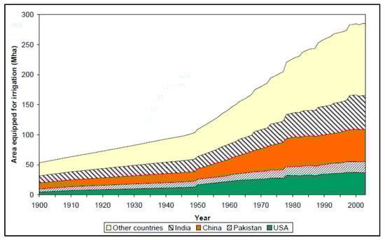 - Freydank, K.; Siebert, S. Towards mapping the extent of irrigation in the last century: A time series of irrigated area per country. In Frankfurt Hydrology Paper 08; Institute of Physical Geography, University of Frankfurt: Frankfurt am Main, Germany, 2008. [Google Scholar]