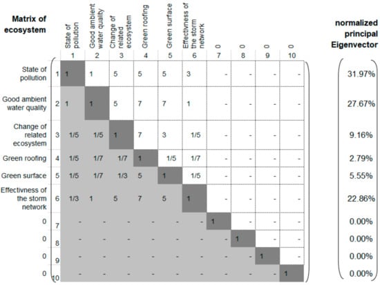 Matrix of ecosystem, = 6.479, CR = 9%.