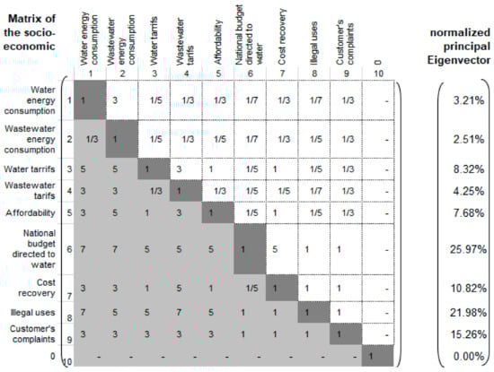 Matrix of socio-economic aspects, λ = 9.955, CR = 8.2%.