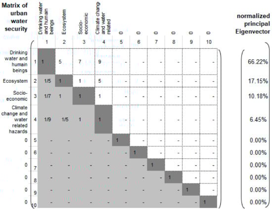 Matrix of urban water security, λ = 4.248, CR = 5%.