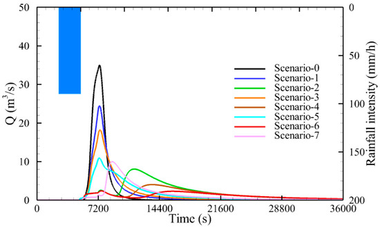 Figure 5. Hydrographs at the catchment outlet under different scenarios (Q: discharge).