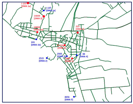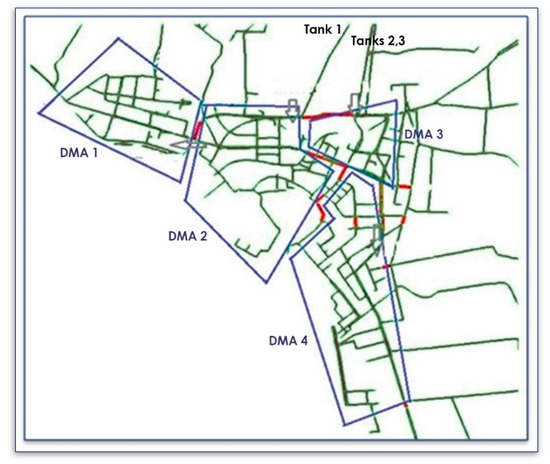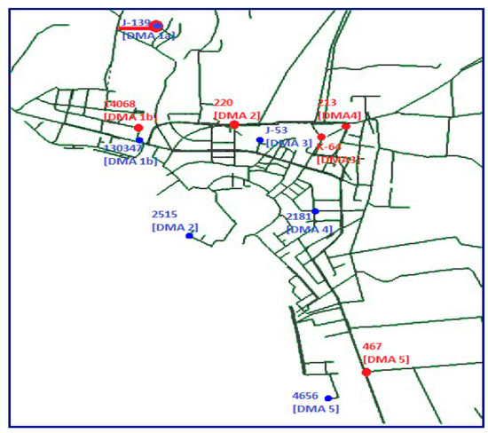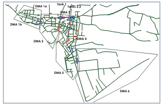- Chatzivasili, S.; Papadimitriou, K.; Kanakoudis, V. Optimizing the formation of DMAs in a water distribution network through advanced modelling. Water 2019, 11, 278. [Google Scholar] [CrossRef]