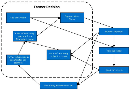 What is clear from Figure 1 is that all farmers need not reach the same decision to pay (or not pay) as differing calculative, social and moral processes attend each farmer. Some may be more willing to take on the wrath of neighbours or the state than others by refusing to pay, whilst others may put a higher value on the sound functioning of the irrigation system, for instance. Understanding how different farmers might react to requests for payment can be usefully analysed in a number of ways. For instance, Lika, Galioto and Viaggi [20] approach the problem using the principal agent theory, but game theory has the potential to offer additional insights.