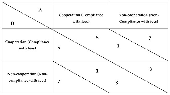 Payoff matrix for paying irrigation fees for two farmers.