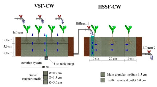 - Akratos, C.S.; Tsihrintzis, V.A. Effect of temperature, HRT, vegetation and porous media on removal efficiency of pilot-scale horizontal subsurface flow constructed wetlands. Ecol. Eng. 2007, 29, 173–191. [Google Scholar] [CrossRef]