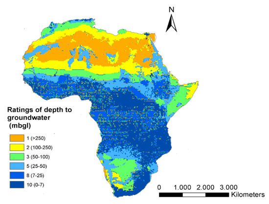 Depth to groundwater (D) rate map for Africa ([1]).