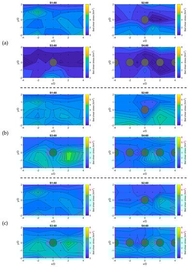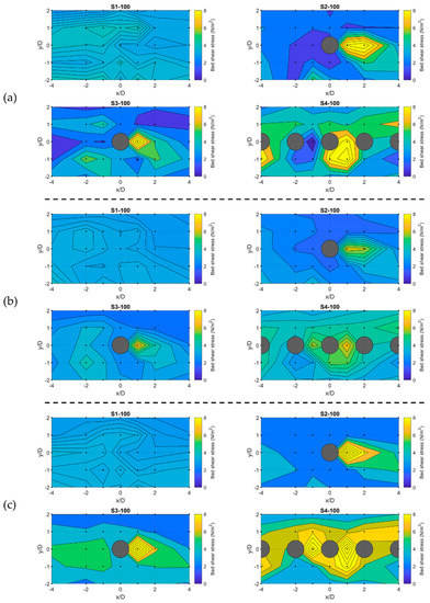 3.3. Spatial Distribution of Near-Bed Shear Stress