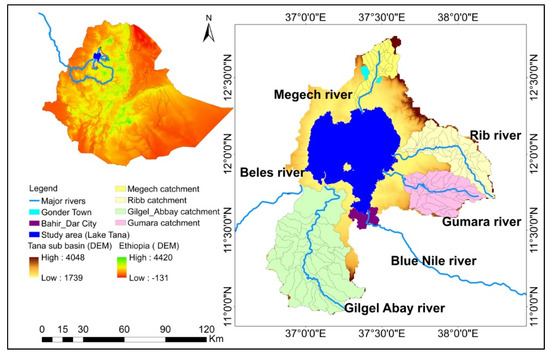 - Wale, A.; Rientjes TH, M.; Gieske AS, M.; Getachew, H.A. Ungauged catchment contributions to Lake Tana’s water balance. Hydrol. Process. Int. J. 2009, 23, 3682–3693. [Google Scholar] [CrossRef]
