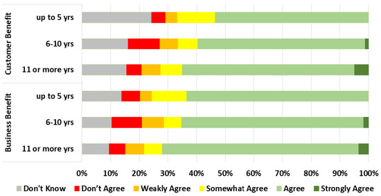 Experts with more years of experience were more likely to provide an opinion than inexperienced participants. Also, customer benefits attracted more ‘do not know’ responses across all years in the industry (see Figure 3).