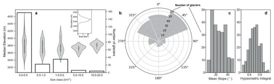 - De Angelis, H. Hypsometry and sensitivity of the mass balance to changes in equilibrium-line altitude: The case of the Southern Patagonia Icefield. J. Glaciol. 2014, 60, 14–28. [Google Scholar] [CrossRef]