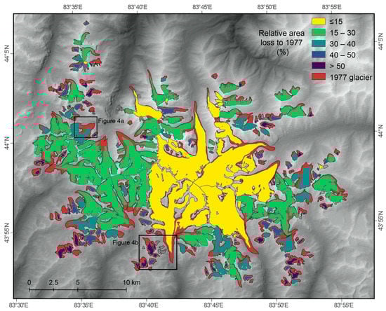 - Pieczonka, T.; Bolch, T. Region-wide glacier mass budgets and area changes for the Central Tien Shan between ~1975 and 1999 using Hexagon KH-9 imagery. Glob. Planet. Chang. 2015, 128, 1–13. [Google Scholar] [CrossRef]