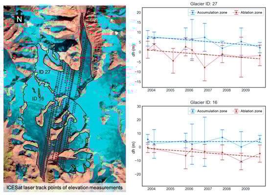 - Treichler, D.; Kääb, A. ICESat laser altimetry over small mountain glaciers. Cryosphere 2016, 10, 2129–2146. [Google Scholar] [CrossRef]
