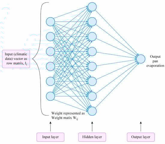 Illustration of the application of feedforward artificial neural networks (ANNs) in modeling pan evaporation rates.