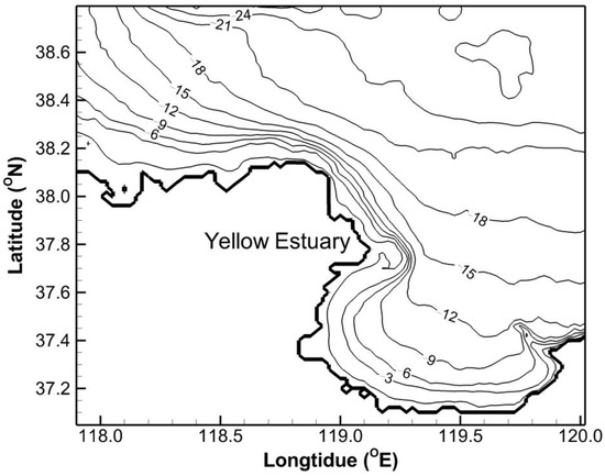 Bathymetry near the Yellow River Estuary, southwest of the Bohai Sea.