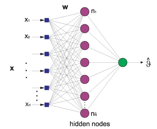 - Calculate the output weight vector as follows:where is the Moore–Penrose inverse of the matrix [39] and is the training output vector, .